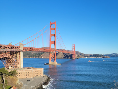 To wrap up my trip, I swung by the Golden Gate Bridge the next morning around 8 am before my flight home later that day. The size of the bridge was seriously impressive. Cars of all kinds were zooming back and forth, cyclists were hitting the sidewalks on both sides for a tough workout, and the views around the bridge were absolutely stunning. I was situated by the Golden Gate Bridge Welcome Center where the viewpoint was great. Surrounding the welcome center, there were walking pathways and benches. One of the pathways lead to a statue of Joseph Strauss, the chief engineer of the bridge. In close proximity, there were boards showing the bridge's history, the building process, and why this American landmark is so important. I soaked it all in and it was a peaceful Monday morning. Seeing such a sight in a peaceful setting is super calming and I was brimming with satisfaction. Would I come back? I wouldn't see why not. There is so much in this world to see, I am extremely grateful that I had the opportunity to check out this city.